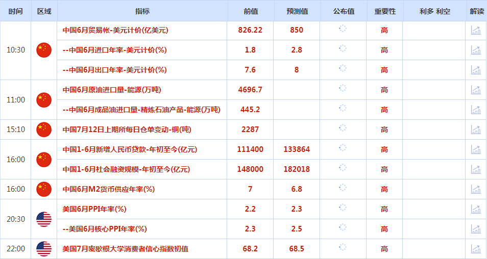 本交易日关注美国6月PPI数据和美国7月密歇根大学消费者信心指数初值,留意地缘局势相关消息。