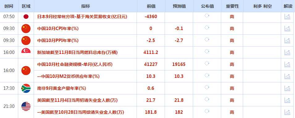 投资者需要注意每周失业救济金申请报告将于本周四发布。美国的下一份重要报告将是11月14日的消费者价格指数。
