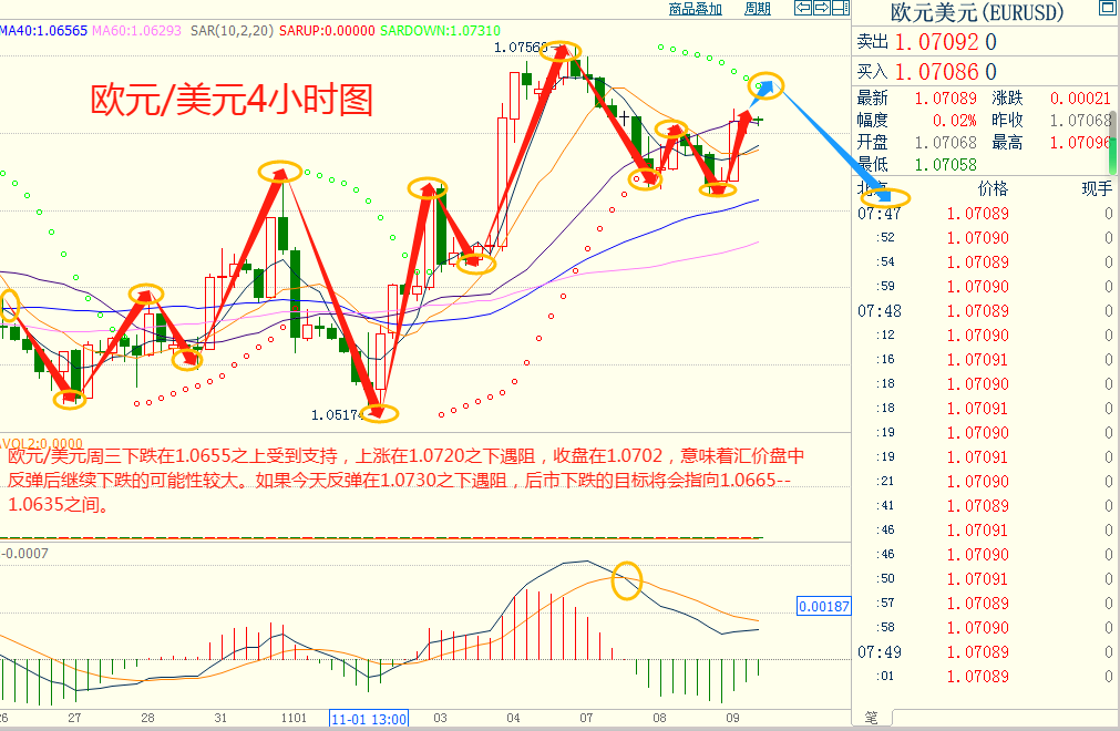 欧美周三下跌在1.0655之上受到支持,上涨在1.0720之下遇阻,意味着欧美短线上涨后有可能保持下跌的走势。如果欧美今天上涨在1.0730之下遇阻,后市下跌的目标将会指向1.0665--1.0635之间。今天欧美短线阻力在1.0725--1.0730,短线重要阻力在1.0745--1.0750。今天欧美短线支持在1.0655--1.0660,短线重要支持在1.0635--1.0640。