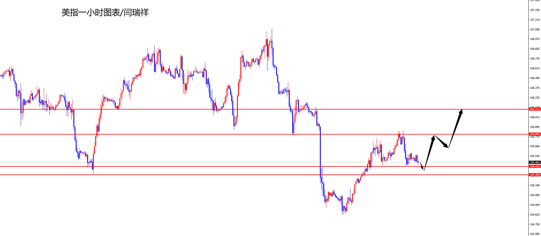 美指105.30-40区间多,防守5美金,目标105.80-106.10