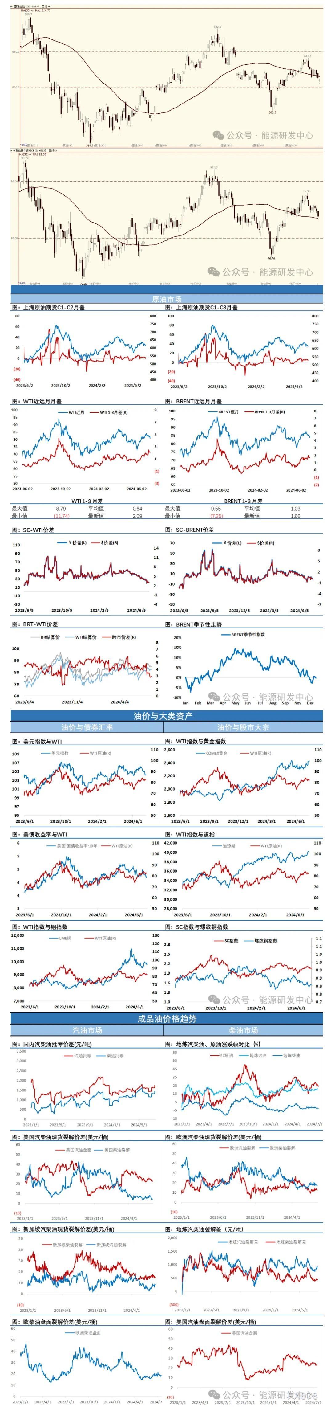 油价周二大幅下挫,从7月上旬反弹高点回落幅度超4美元,回调力度加大,显示随着市场预期的变化,投资者开始修正前期过度乐观的观点。凌晨API数据显示原油季节性降库,但成品油方面尤其是柴油连续大幅累库压制全球柴油表现。全球最大原油进口国疲软的消费表现开始影响到交易员的决定,而这一点我们在二周前就注意到并持续在报告中做出提醒。欧美市场成品油裂解差也在油价冲高之后开始走弱,需求端仍然是市场担忧的因素。另外对于近期美国总统竞选的进展也影响到了投资者对于油市的预期,特朗普提名的副总统候选人JD Vance称美国可以成为世界上的主要能源来源国,联想到特朗普一直以来对于能源政策和油价的观点,也让投资者对油价评估变得谨慎。