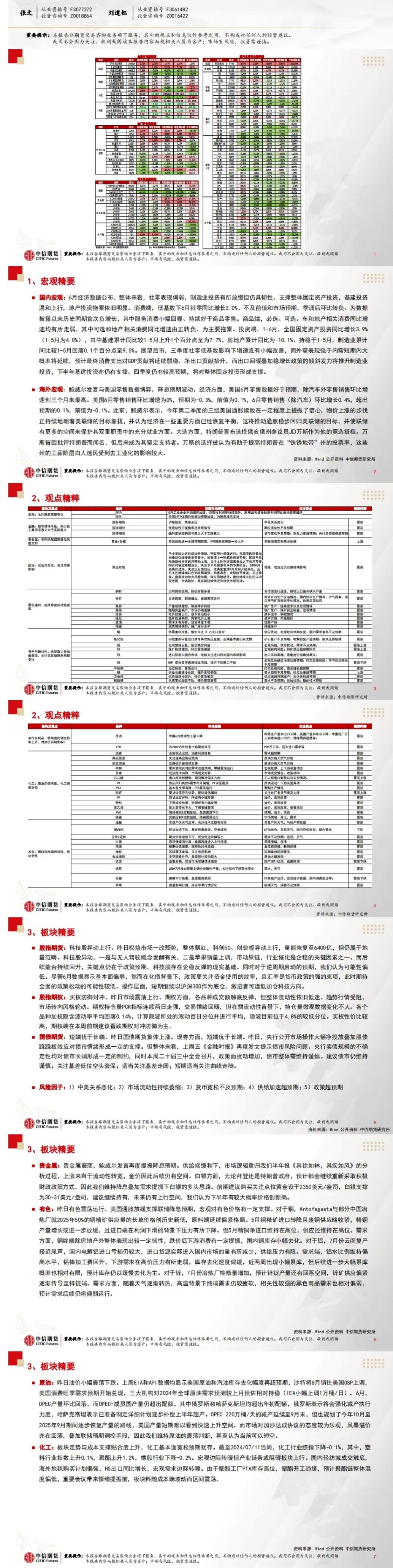 以下为中信期货今日晨报对股指、国债、贵金属、原油能源化工、有色金属、螺纹钢材焦炭黑色系玻璃纯碱等建材、玉米生猪油脂蛋白粕等农产品等期货的操作建议和提醒。