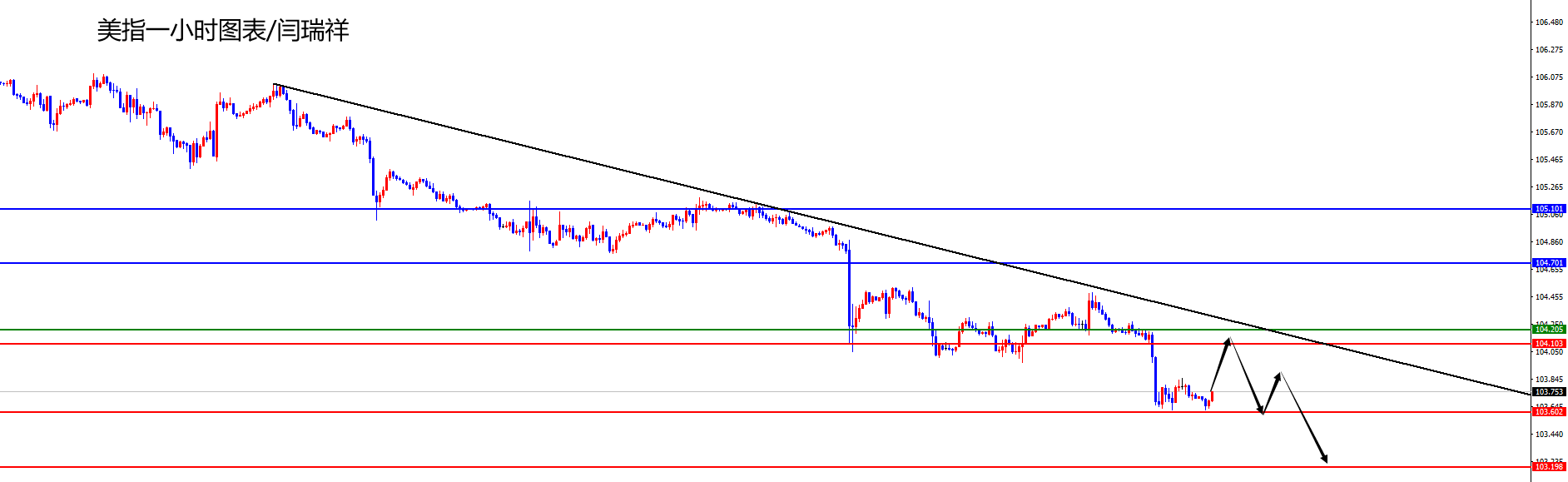 美指104.10-20区间空,防守5美金,目标103.60-103.20