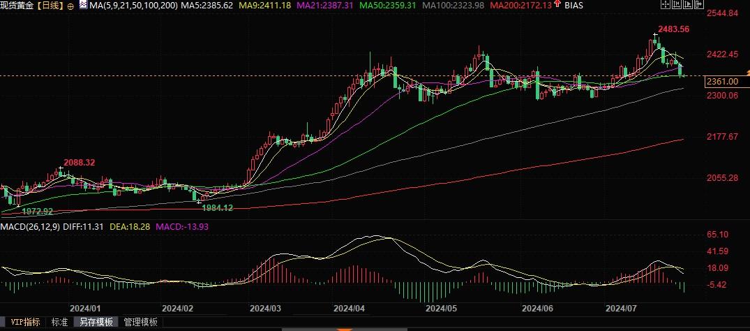 北京时间7月26日9:20,现货黄金报2359.86美元/盎司
