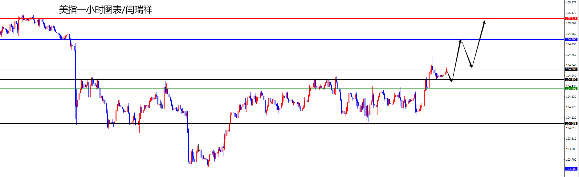 美指104.40-50区间多,防守5美金,目标104.90-105.10