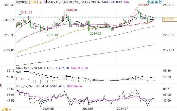 北京时间7月31日10:40 现货黄金 报 2404.10 美元/盎司