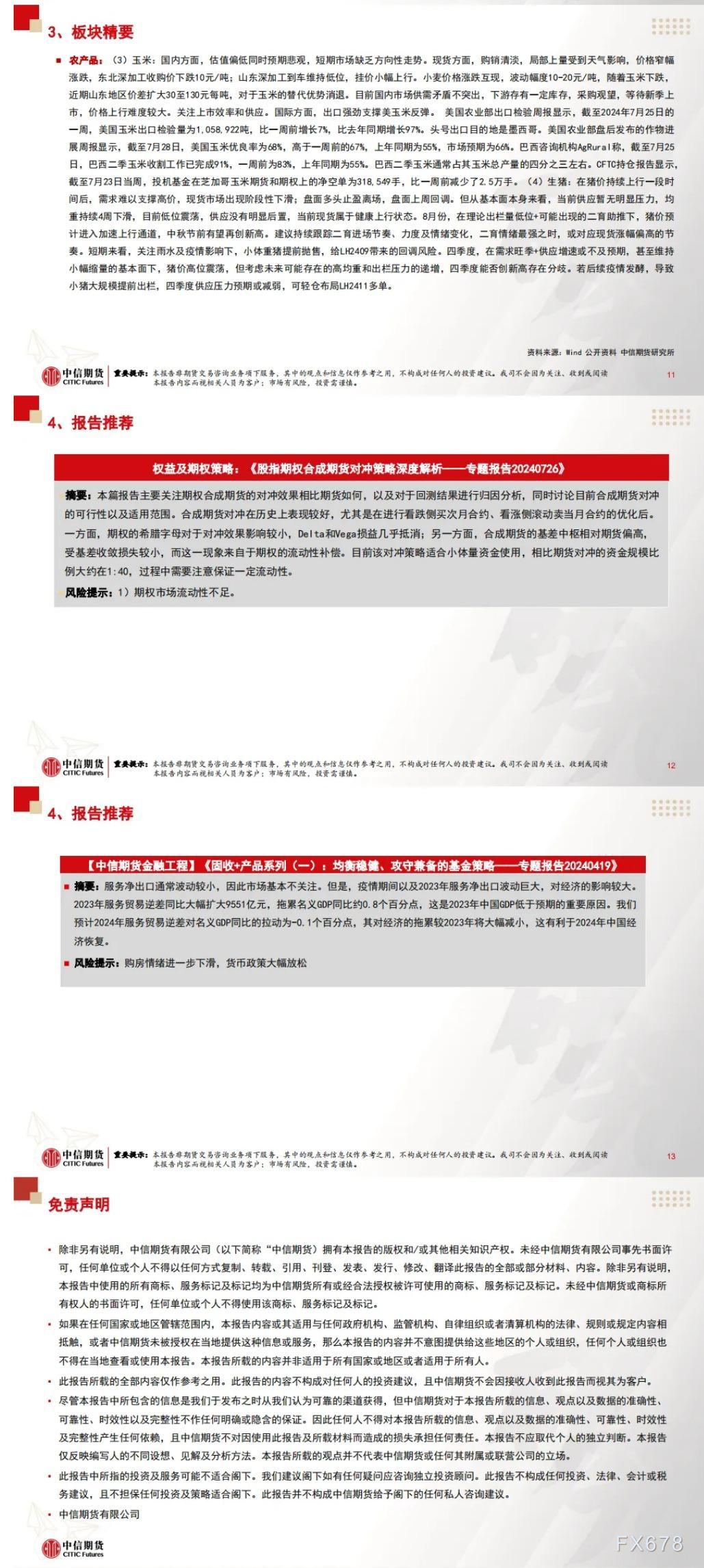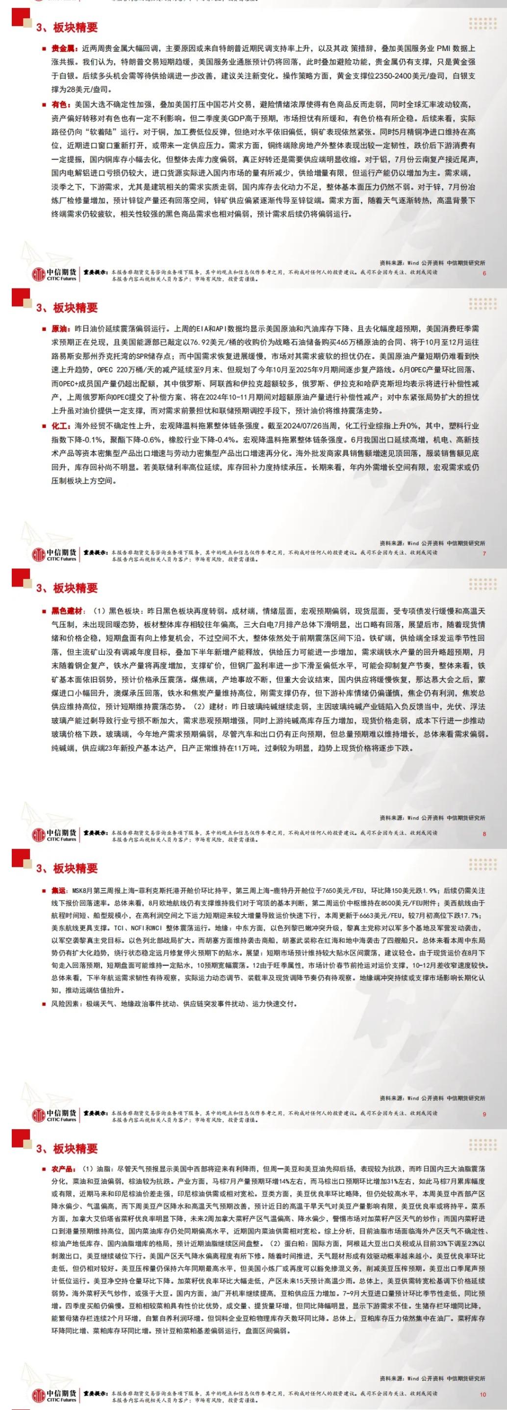 以下为中信期货今日晨报对股指、国债、贵金属、原油能源化工、有色金属、螺纹钢材焦炭黑色系玻璃纯碱等建材、玉米生猪油脂蛋白粕等农产品等期货的操作建议和提醒。