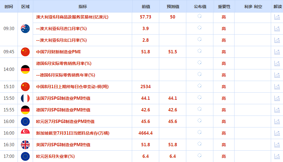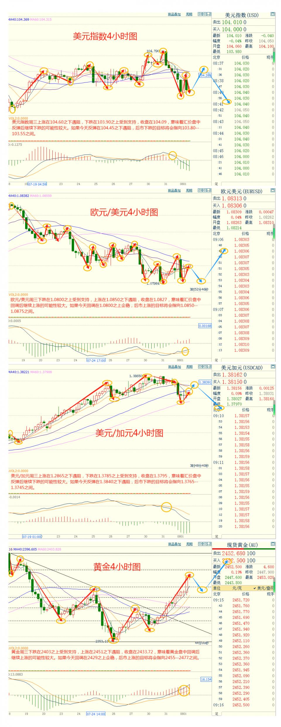 此外,周五还将出炉美国7月非农就业报告,投资者也要留意市场对该数据的预期的变化。相对而言,美联储利率决议的利好基本被市场消化,需留意多头的获利了结情况和“靴子落地”行情的可能性,但地缘局势偏向继续支撑金价,或将限制金价的短线回调空间。