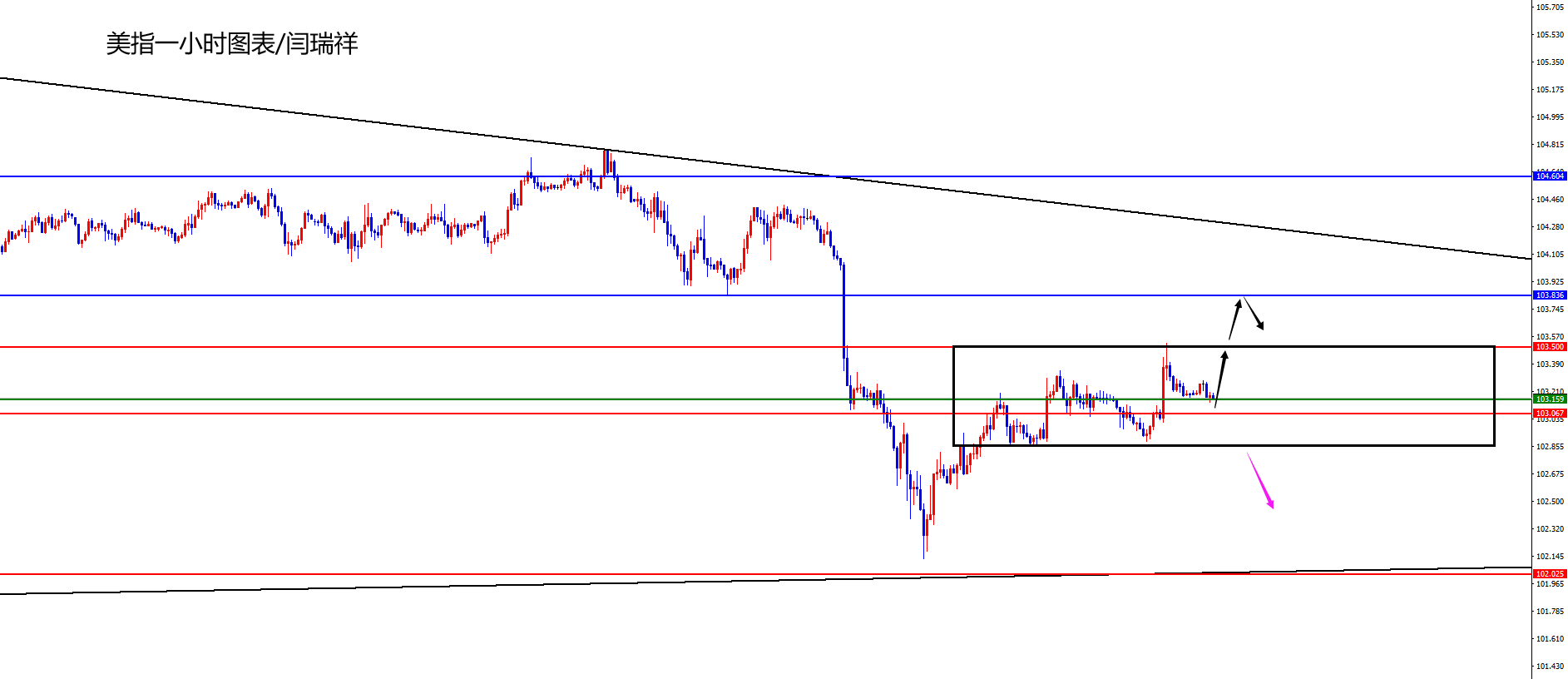 美指103.05-15区间多,防守5美金,目标103.40-103.80