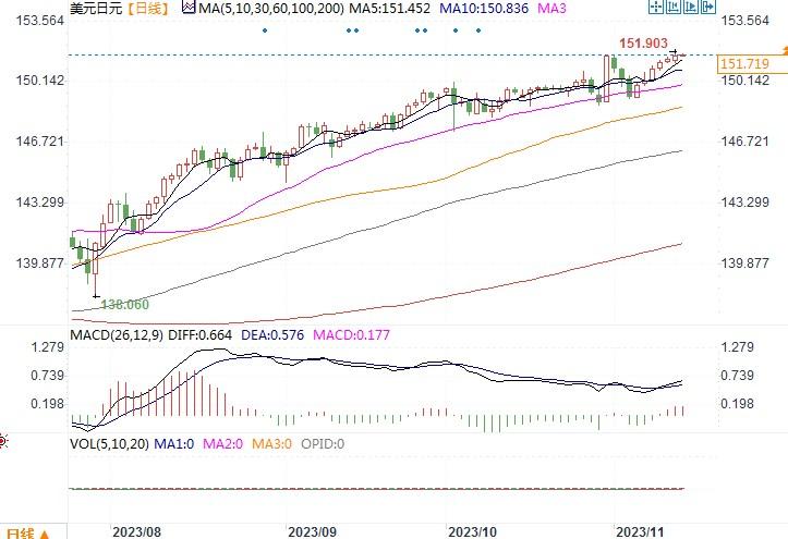 北京时间11月14日11:12 美元兑日元 现报 151.719/725
