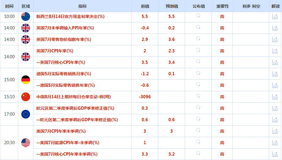 交易员们现在期待着将于周三公布的美国7月份消费者物价指数(CPI)数据和周四公布的零售销售数据。数据可以为美联储的下一步政策举措提供进一步的方向。