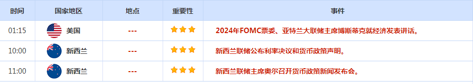 亚特兰大联储主席博斯蒂克周二表示,最近的经济数据让他对美联储能让通胀率回到2%的目标“更有信心”,但他希望看到“多些数据”,然后才准备支持降息。他称通胀和就业市场之间的风险更接近于平衡,但他希望确保美联储避免过早降息,以免在通胀重新加速时不得不在以后加息。尽管如此,如果经济发展如他所料,利率将在今年年底前降低。