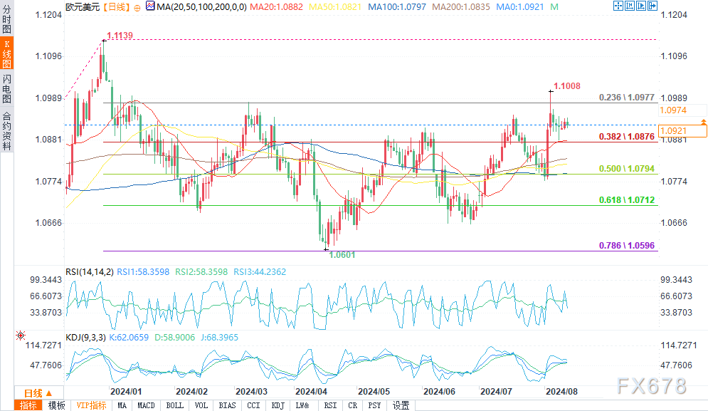 由于本周美国通胀报告即将发布,市场放缓,欧元/美元在窄幅拥堵中保持稳定,受到1.0933(1.1139-1.0601的61.8%的斐波那契阻力位)的限制。