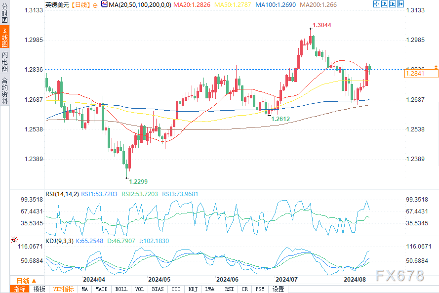 英镑/美元盘中走低0.12%至 1.2844 。此前数据显示英国7月份消费者物价通胀今年首次出现上升,但升幅小于预期,原因是服务价格涨幅较小。服务价格通胀是英国央行密切关注的指标。