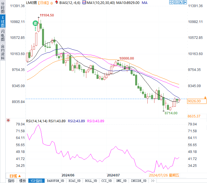 基本面上,铜的需求端受到全球经济形势的影响。美国7月生产者物价指数(PPI)涨幅低于预期,显示出通胀可能正在降温,这对铜价构成了一定的支撑。