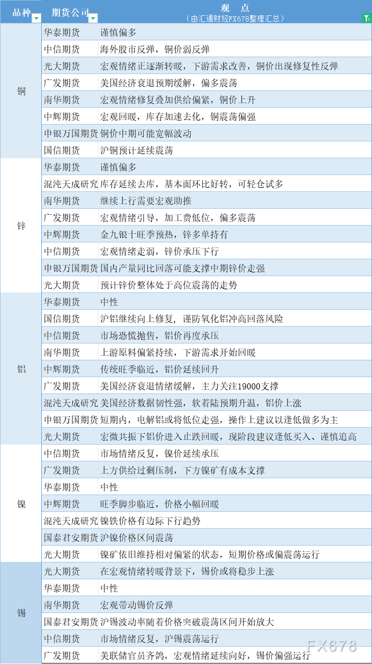 期货公司观点汇总一张图:8月20日有色系(铜、锌、铝、镍、锡等)