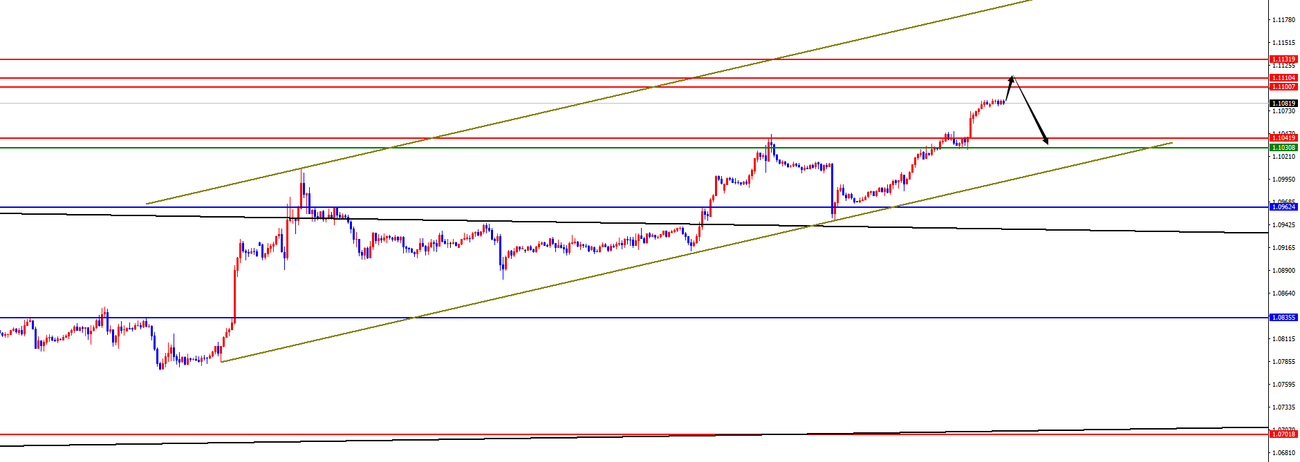 欧美1.1100-10区间空,防守40点,目标1.0960-1.0930