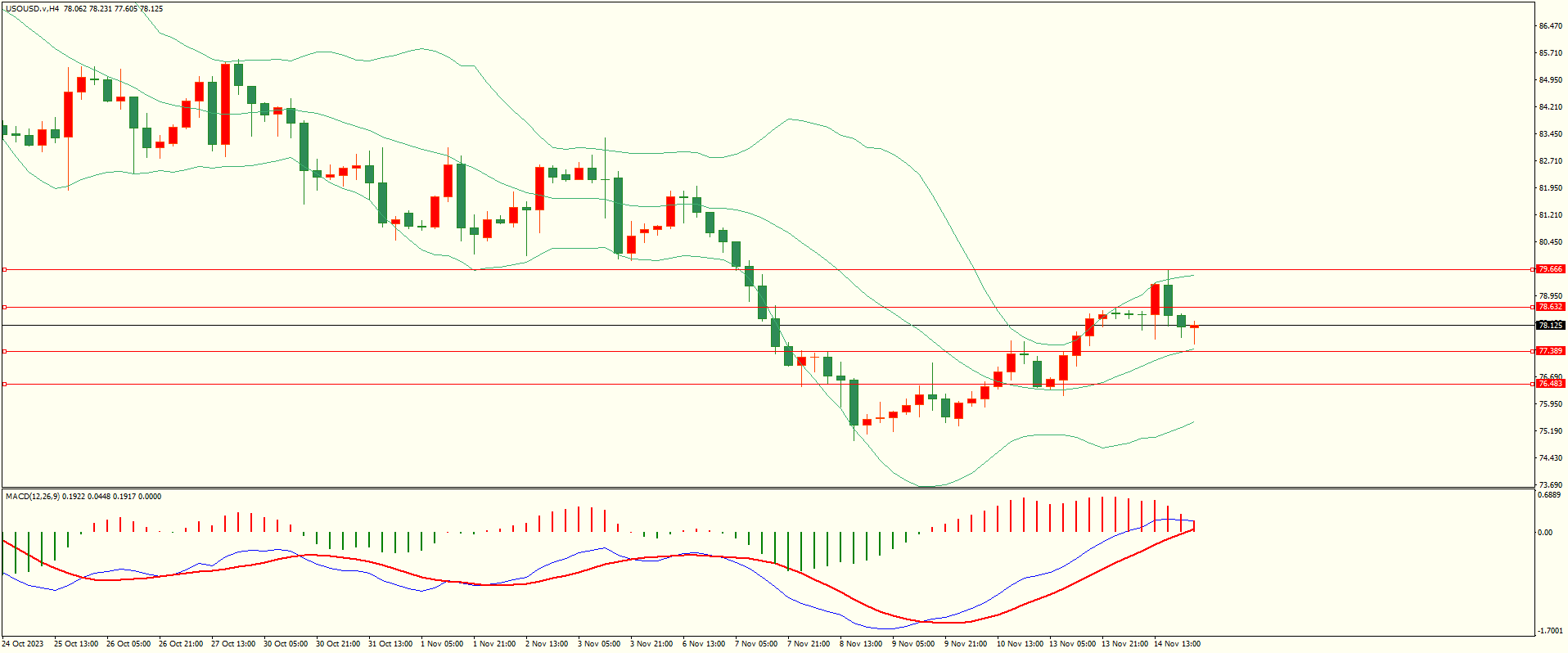 原油昨日回调过后延续走高,纽约盘时段触及第一阻力承压下行,日线报收上下影线小阴线,阻力与支撑并存,短线预防震荡反复,从4H来看,布林中轨偏上,MACD零轴附近运行,日内上方首要阻力78.60-70,第二阻力79.65,下方支撑77.30-40,76.40-50,保持在第一阻力下方短线有望测试第一支撑。