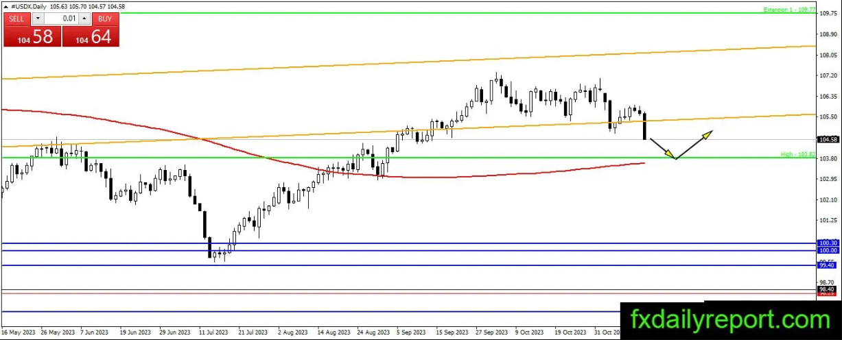 受CPI数据影响,美元指数大幅下跌。美元指数将继续下行,目标为103.85和200日均线。与之前一样,交易者将等待指数触及这两个点并做出反应。只要没有形成更高的摆动高点,指数的方向仍然看跌。