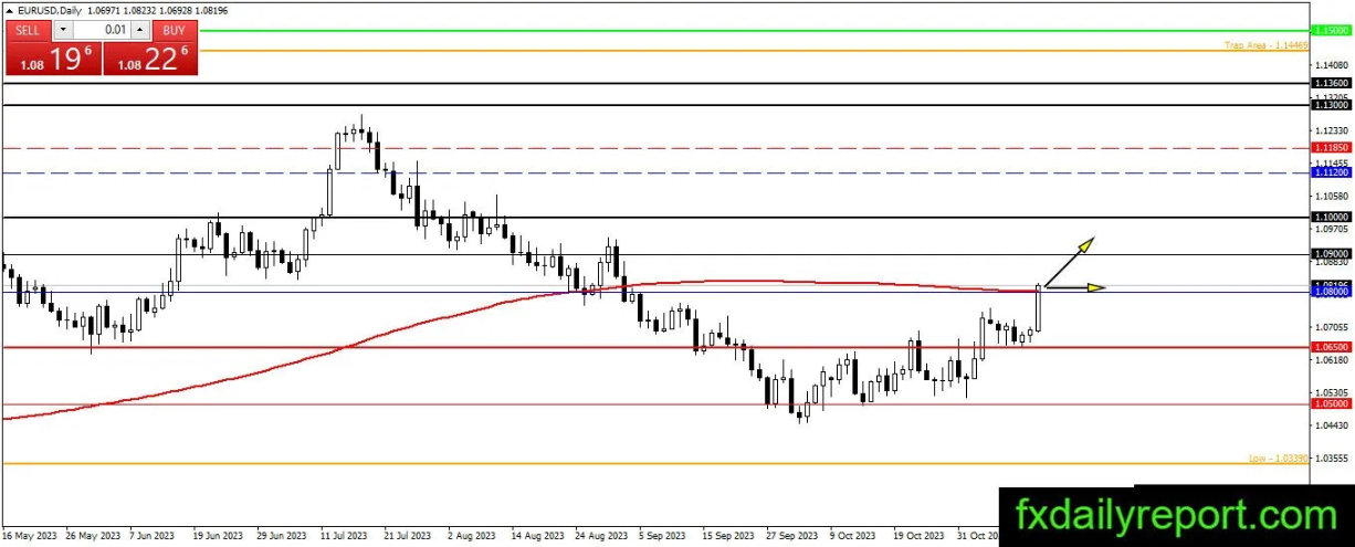 欧元/美元跃升至200日均线和1.0800上方。这是一个非常看涨的情况,如果该货币对能够收于这两个点之上,那么上升趋势可以继续。交易者将继续耐心等待,以获得进一步的看涨确认。当货币对收盘价高于这两个点时,交易者可以将其作为支撑点来建立多头头寸。