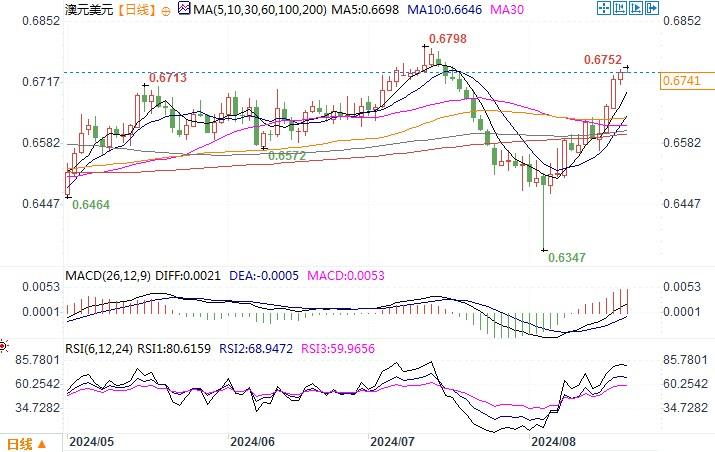最近围绕澳元的消息表明,澳元兑美元的连胜势头可能会延续。澳洲联储公布的8月份会议纪要显示,现金利率将在较长时间内保持稳定,这对澳元起到了支撑作用。央行维持利率的决定反映了一种平衡经济风险的谨慎态度,这受到了市场的欢迎。这种对央行政策谨慎乐观情绪可能会进一步使澳元走强,尤其是在投资者将央行立场解读为支持澳大利亚经济当前增长轨迹的情况下。