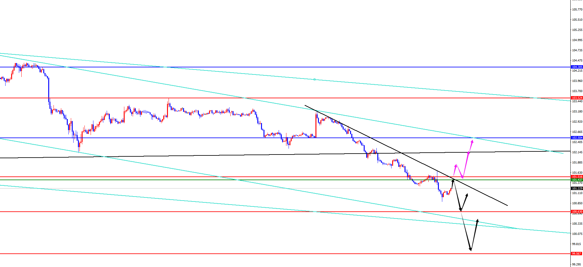 美指101.40-50区间空,防守5美金,目标100.60-99.60(一旦提前上破101.50位置则后续有望上行,关注市场节奏)