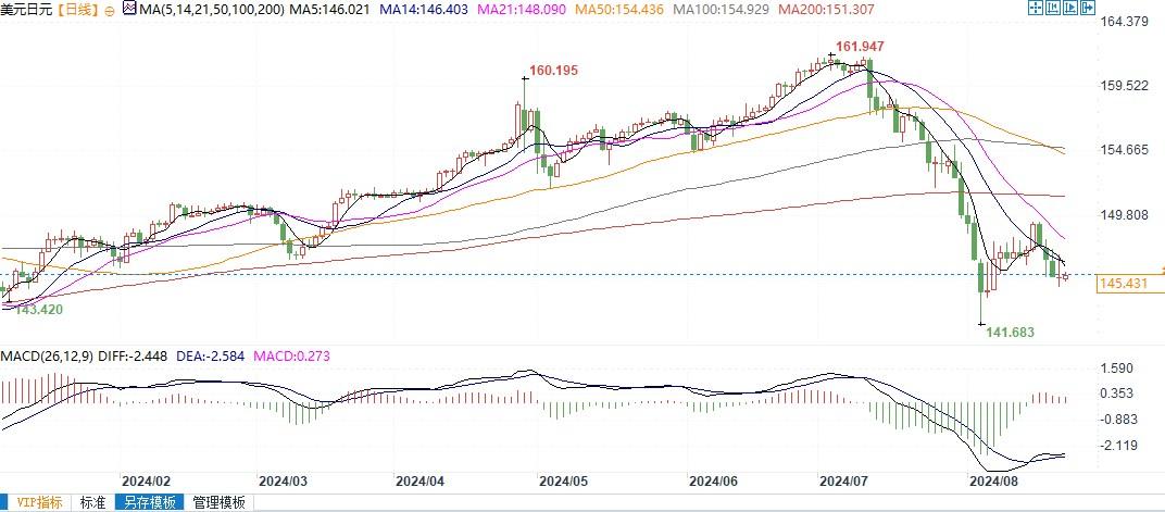 北京时间8月22日11:00,美元兑日元报145.44/46