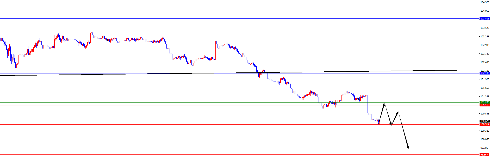 美指101.10-20区间空,防守40点,目标100.50-99.60