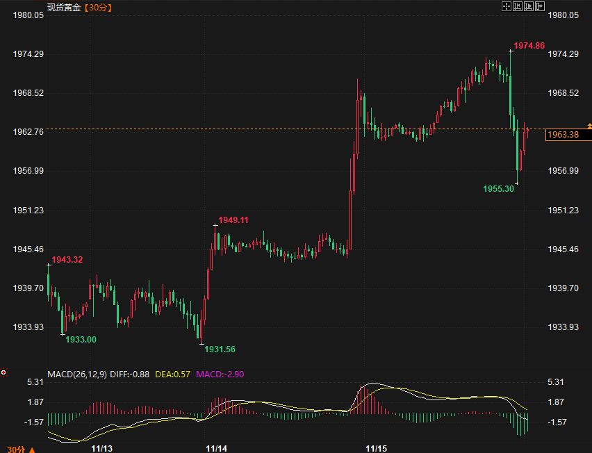 MarketWatch认为,10月份全美零售商销售额下降0.1%,为七个月来首次下降,但随着美国进入假日购物季,这种下降不太可能持续下去。这导致黄金在数据公布之初小幅上涨后跳水。