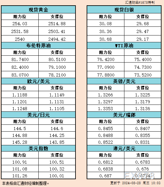 本文提供黄金、原油、美元指数、欧元、英镑、日元、瑞郎、澳元支撑阻力位。