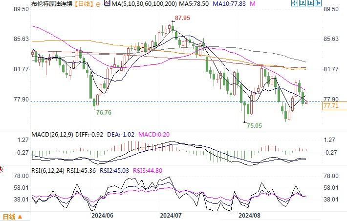 北京时间8月29日13:09 布伦特原油连续 报 77.71 美元/桶