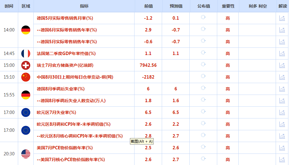 前日公布数据与消息: