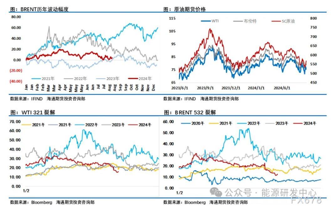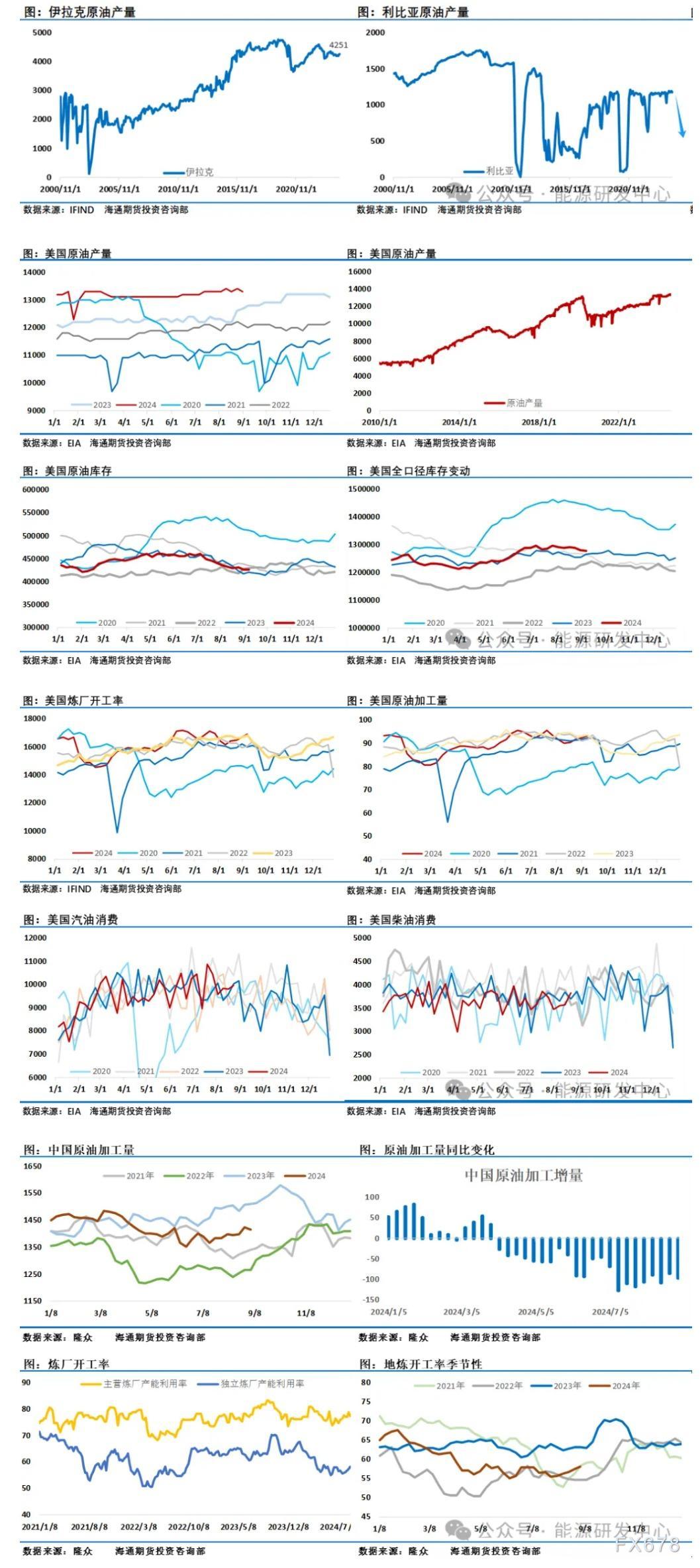 对于美国原油产量本周下调10万桶/日,过去几周产量在1330-1340万桶/日之间波动,EIA对明年美国原油产量增长预期近50万桶/日。除了特朗普明确大力鼓励传统化石能源的开发,近期另一个总统候选人美国副总统哈里斯表示,如果当选总统,她不会停止水力压裂,一改她之前反对目前美国大部分石油和天然气生产技术的态度。“作为副总统,我没有禁止水力压裂,”哈里斯周四在接受采访时表示,这是她成为民主党候选人以来就这一问题发表的最明确的声明。“作为总统,我不会禁止水力压裂。”。供应端成了过去一周导致油价剧烈波动的不稳定因素,短期供应收紧与中长期供应压力影响预期的多空因素影响了投资者的判断,油价频繁的受到最新进展的扰动,这也让油价的走势节奏难以把控。