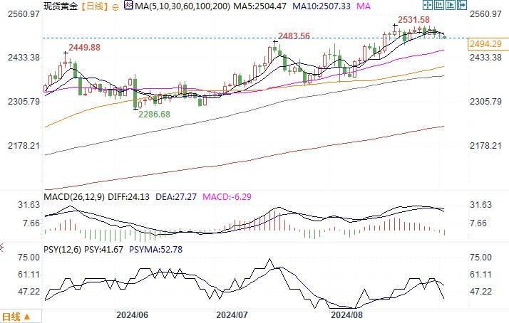 北京时间9月3日11:11 现货黄金 报 2494.89 美元/盎司