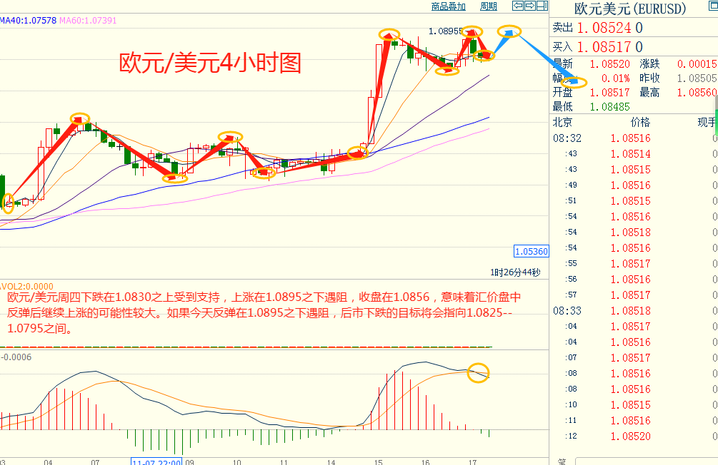 欧美周四下跌在1.0830之上受到支持,上涨在1.0895之下遇阻,意味着欧美短线上涨后有可能保持下跌的走势。如果欧美今天上涨在1.0895之下遇阻,后市下跌的目标将会指向1.0825--1.0795之间。今天欧美短线阻力在1.0890--1.0895,短线重要阻力在1.0920--1.0925。今天欧美短线支持在1.0825--1.0830,短线重要支持在1.0795--1.0800。