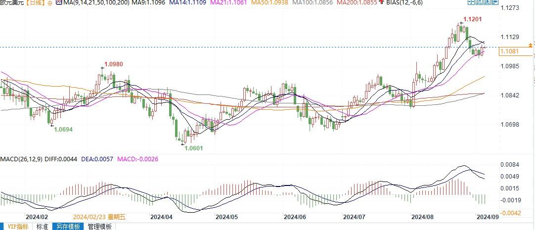 北京时间9月5日10:32,欧元兑美元1.1081/82