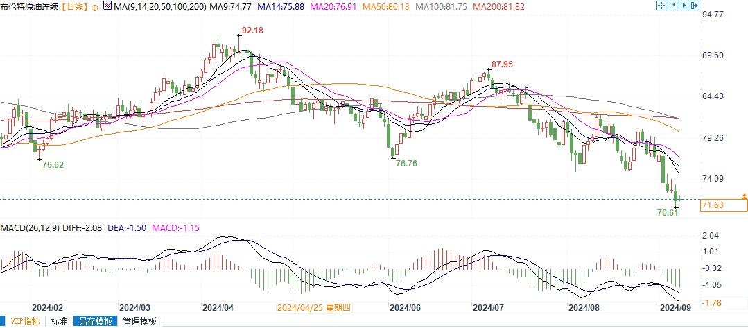 北京时间9月9日14:02,布伦特原油价格报71.64美元/桶