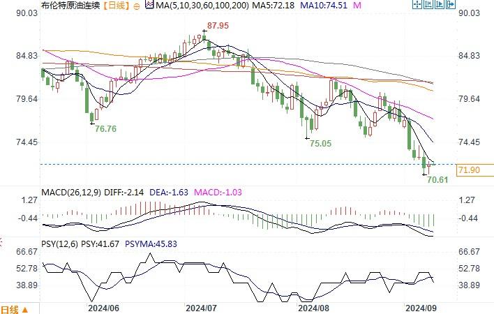 北京时间9月10日11:16 布伦特原油连续 报 71.87美元/桶