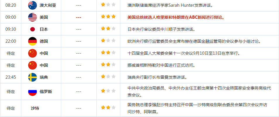 OPEC下调今明两年全球原油需求增速预期,导致油价大跌。北京时间9月11日9:00,哈里斯和特朗普将展开辩论,这是市场关注的焦点。