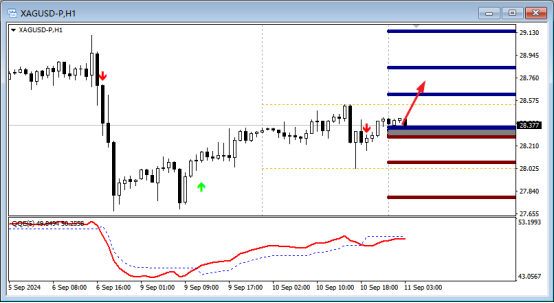目前QE箭头向下,代表空头强劲,预示行情向下的概率大,故而可以采取高空的策略,可以在15分钟寻找做空信号,第一压力位置:28.65。