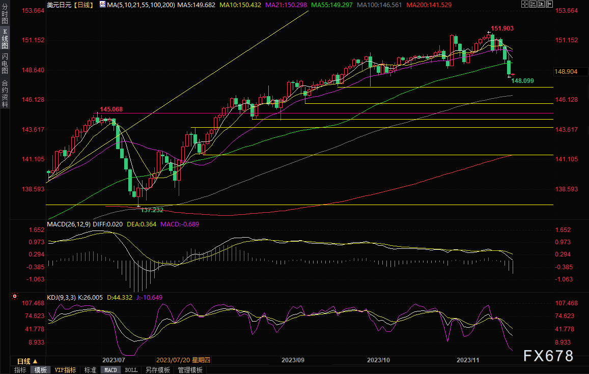 美元/日元自年初以来一直处于上升通道,但整个11月开始承受去年高点151的压力。受此压力,美元/日元大幅回落,美国数据引发美元走软。