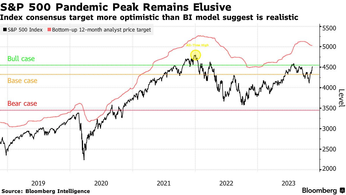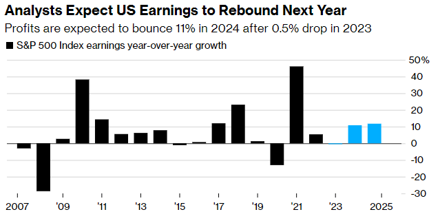 典型的盈利后衰退反弹预计将在利率持续走高的背景下出现。根据BI股票策略Gina Martin Adams和Michael Casper的预测,即使在最好的情况下,这也可能将标准普尔500指数的潜在上涨空间限制在该指数目前的水平附近。