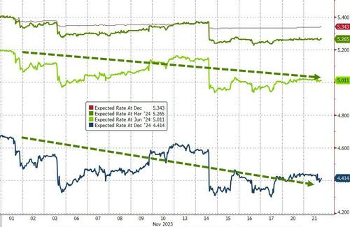 利率变化预期已经明显变得更加温和,预计2024年将更早降息(预计明年将降息近100个基点)……