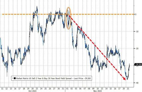 收益率曲线(30年期)也大幅趋平(再次倒挂)……