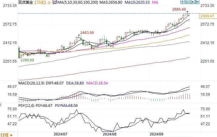 北京时间9月27日13:46 现货黄金报2663.70美元/盎司