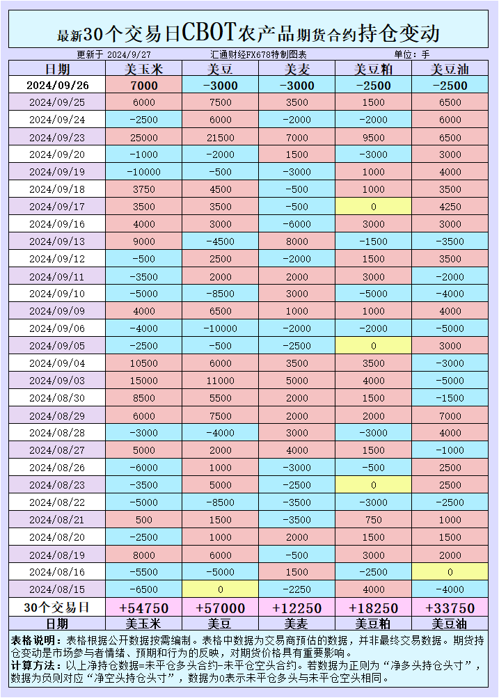 豆油市场的投机性净空头头寸也大幅增加,表明投资者对未来的价格走势持更加悲观的态度。9月27日,豆油期货价格跟随大豆和豆粕下行。