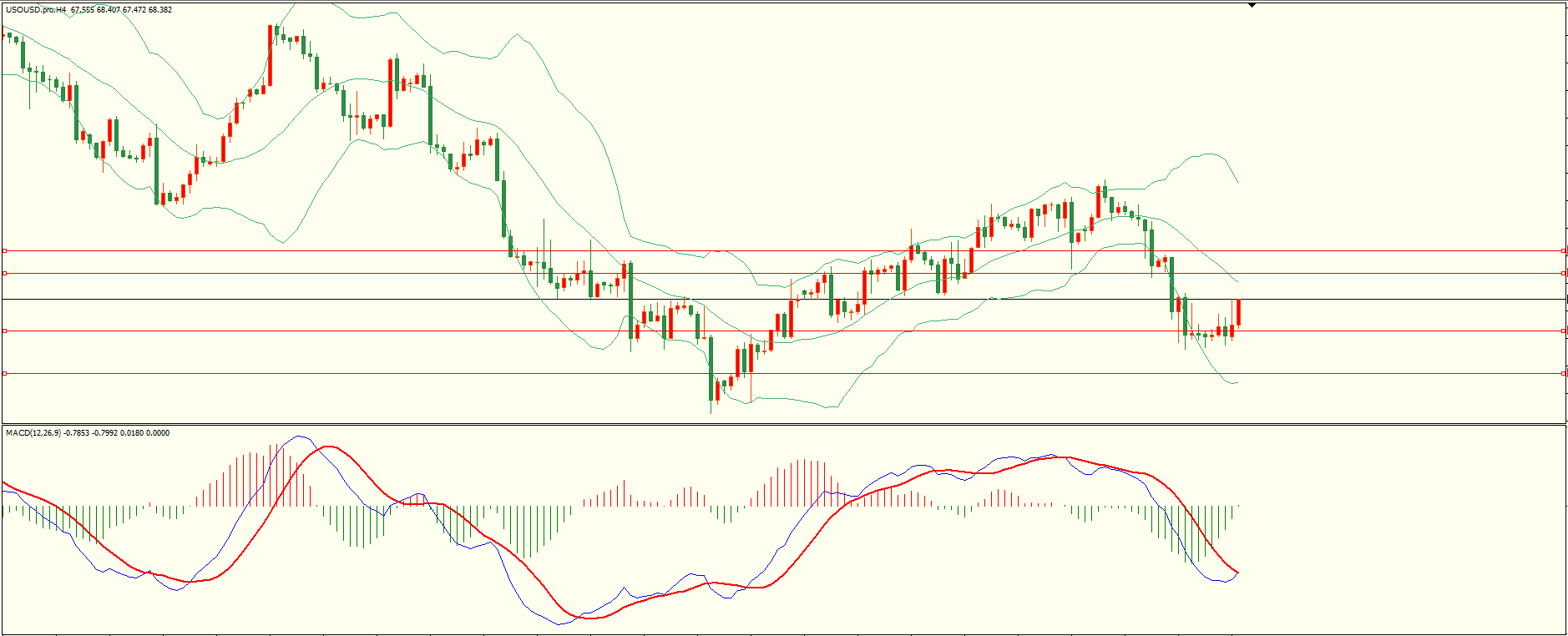 原油上周五亚市开盘后展开反弹,尾盘时段触及第一阻力略有反复,日线报收下影线中阳线,目前上方依然面临日线布林中轨压力,在没有收复前谨慎追涨,从4H来看,布林上下轨收窄,MACD零轴下方运行,日内上方首要阻力69.20-30,第二阻力69.90,下方支撑67.30-40,66.00,保持在第一阻力下方短线有望回测第一支撑。