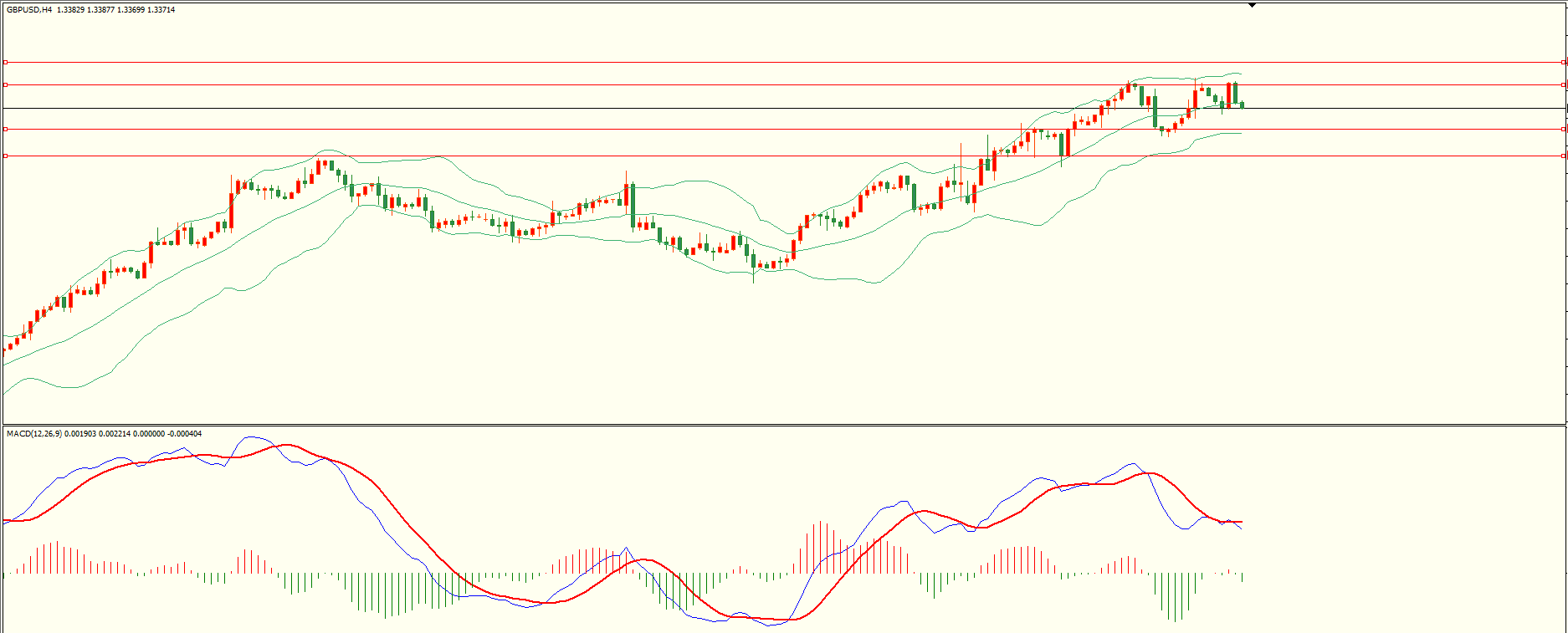 英镑上周五亚市开盘后延续上行,盘中触及第一阻力附近承压下行,日线报收上下影线小阴线,短线总体处于多空震荡格局,从4H来看,布林中轨略有走平,MACD零轴上方运行,日内下方首要支撑1.3325,第二支撑1.3270,上方阻力1.3420,1.3460-70,第一支撑在没有失守前短线有望回测第一阻力。