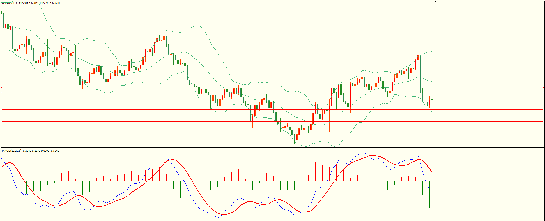 美日上周五先扬后抑,盘中触及第二阻力冲高回落,日线报收上下影线大阴线,关键阻力未能收复,日线有回归空头迹象,从4H来看,布林上下轨扩张,MACD零轴附近运行,日内上方首要阻力143.15,第二阻力143.55-60,下方支撑141.95,1.41.15-20,保持在第一阻力下方短线有望测试第一支撑。