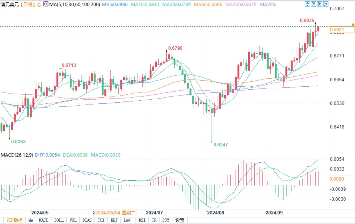 三菱日联表示,中国“全面的扶持措施和在必要时加大力度的承诺”可以提振信心,对于投资者情绪来说是一个积极的发展,也表明中国将更加坚定地推动经济增长。这种对更加积极的看法已经推动澳元兑美元突破了0.6900左右的重要阻力位,是过去几年的高点所在。